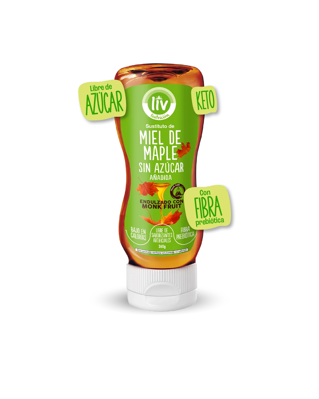 Sustituto de miel de maple, sin azúcar, endulzada con monkfruit, keto, con fibra prebiótica, apta para diabéticos.